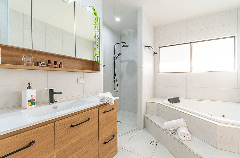 You can appreciate the finer things in life… little touches and refinements with no expense spared to make your stay that much more enjoyable. Like a master bedroom with the most luxurious king size bed, fresh cotton sheets, fluffy bath towels and robes and a designer ensuite. Your main bathroom features a sumptuous twin spa bath and separate shower with rainmaker shower head, designer tapware and a cleverly hidden laundry with washing machine and dryer.