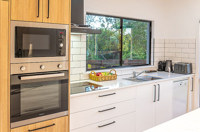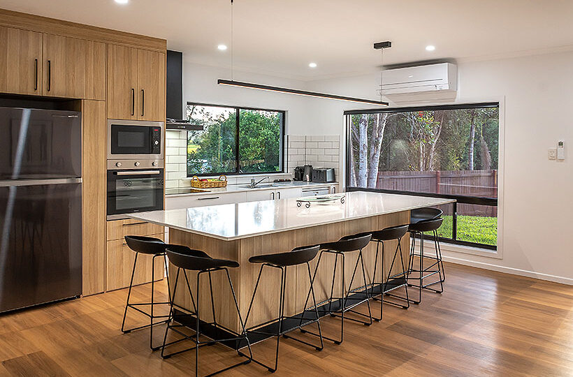 You’ll love the free Netflix and Foxtel on 4K Smart TVs in every bedroom plus a huge 65” 4K Smart TV in the lounge room beside the cosy, electric log fire. Did you say coffee? A Nespresso coffee pod machine awaits your touch with a generous selection of gourmet Nespresso coffee pods to get you started. The designer kitchen is just exquisite – and fully equipped with the finest European appliances, marbled stone benchtops and a spectacular 5m long marbled stone island bench with views out over the ancient volcano cones that keep guard over Yungaburra.